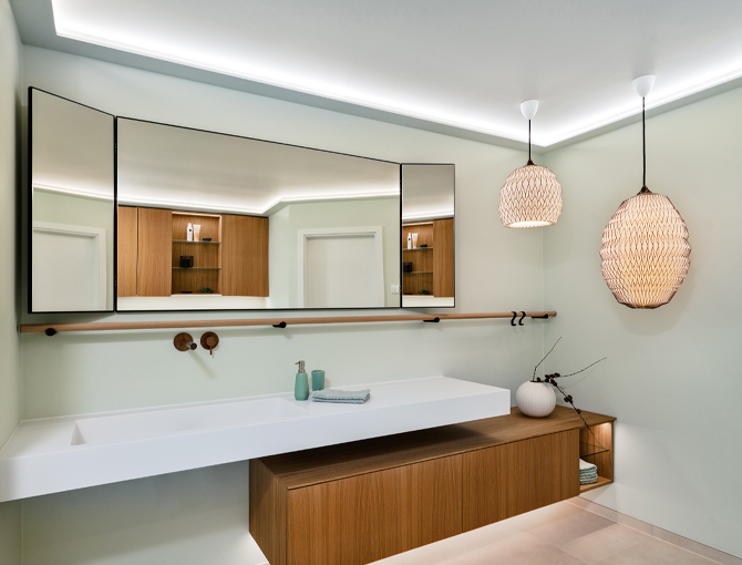 Aus unserem veralteten Badezimmer mit damals extra WC wurde eine Wellness-Oase mit besonderer Strahlkraft.